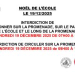 RAPPEL – Interdiction de circuler et de stationner rue de la Promenade et changement des arrêts de bus à l’occasion du Noël de l’école le vendredi 19 décembre 2025. Posted on 18 décembre 202518 décembre 2025 by Mairie Read More