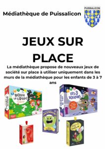De nouveaux jeux de société débarquent à la médiathèque pour les 3 à 7 ans. Journée de découverte le 4 février aux horaires de la médiathèque
