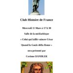 Club d’Histoire, le mercredi 11 mars à 17h30 Posted on 6 mars 2026 by communication Le Club d'Histoire vous invite le mercredi 11 mars à 17h30 dans la salle de la médiathèque pour un exposé sur "Vercingétorix, celui qui faillit vaincre César, quand la Gaulle défia Rome", présenté par Corinne Dandler. Read More